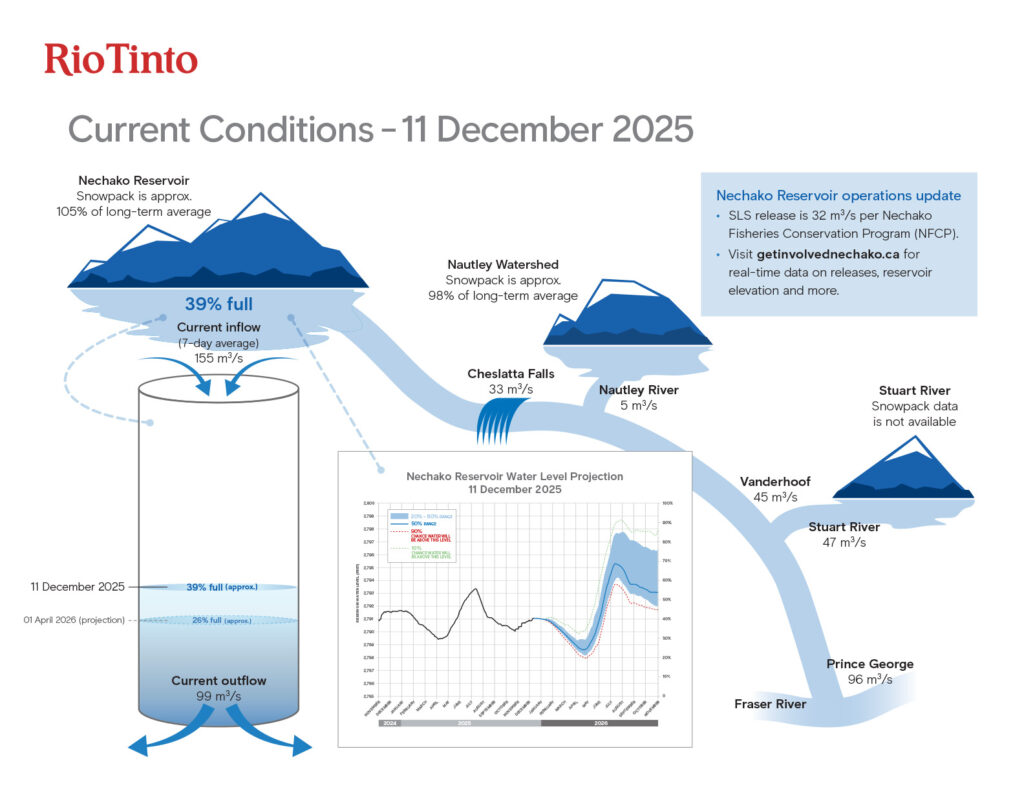 - Please see below images or visit www.getinvolvednechako.ca/flow-facts for further details regarding reservoir conditions.